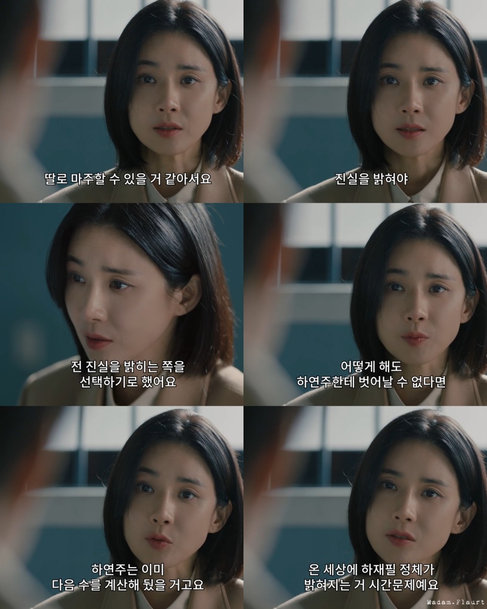 하이드에서 하연주 이청아는 무엇을 바랐을까? 정의로운 울버린이었던 나문영 이보영이 신념을 버리고 죽었다 살아온 아버지를 위해 무죄 변론하는 모습을 보고 싶었던 것일까? 하재필로 살아온 나석진이 죄를 인정하고 나문영도 죗값과 비난을 감수하겠다며 사죄하자 같잖은 사과 함부로 하지 말라며 분노하며 흑화한다.