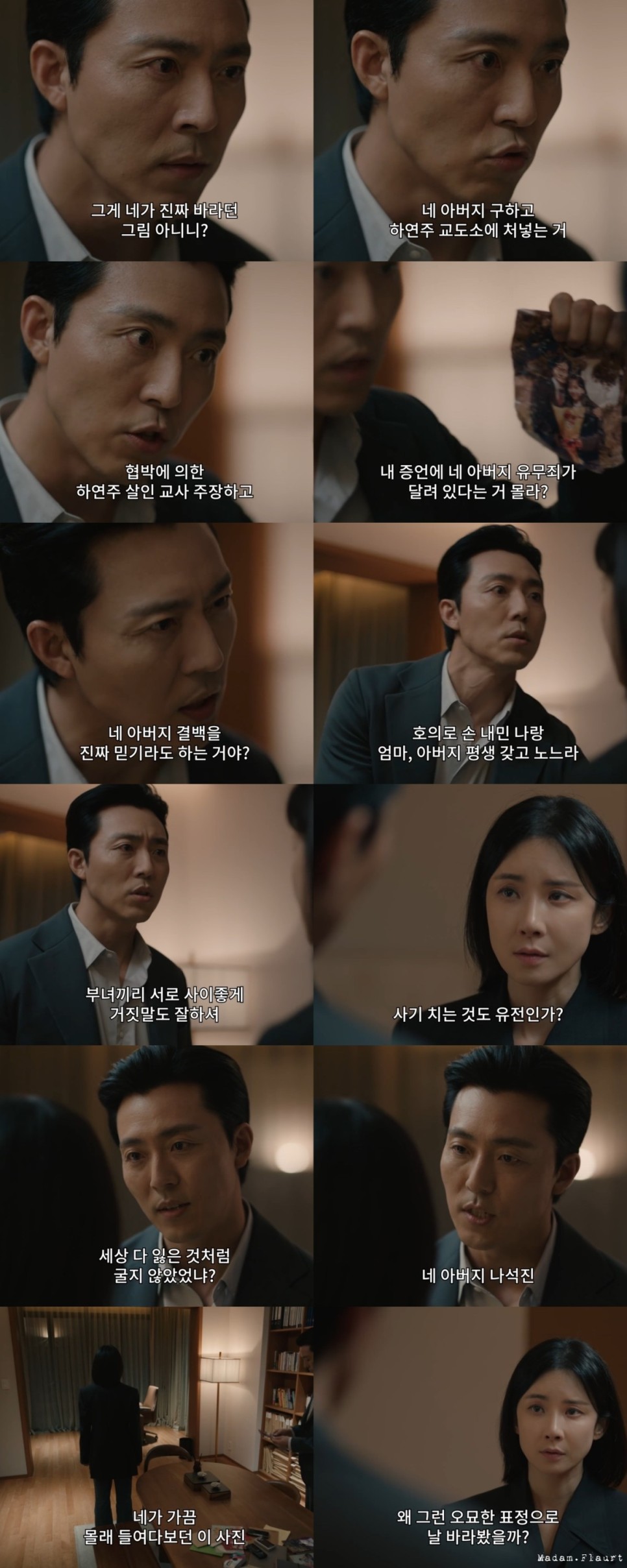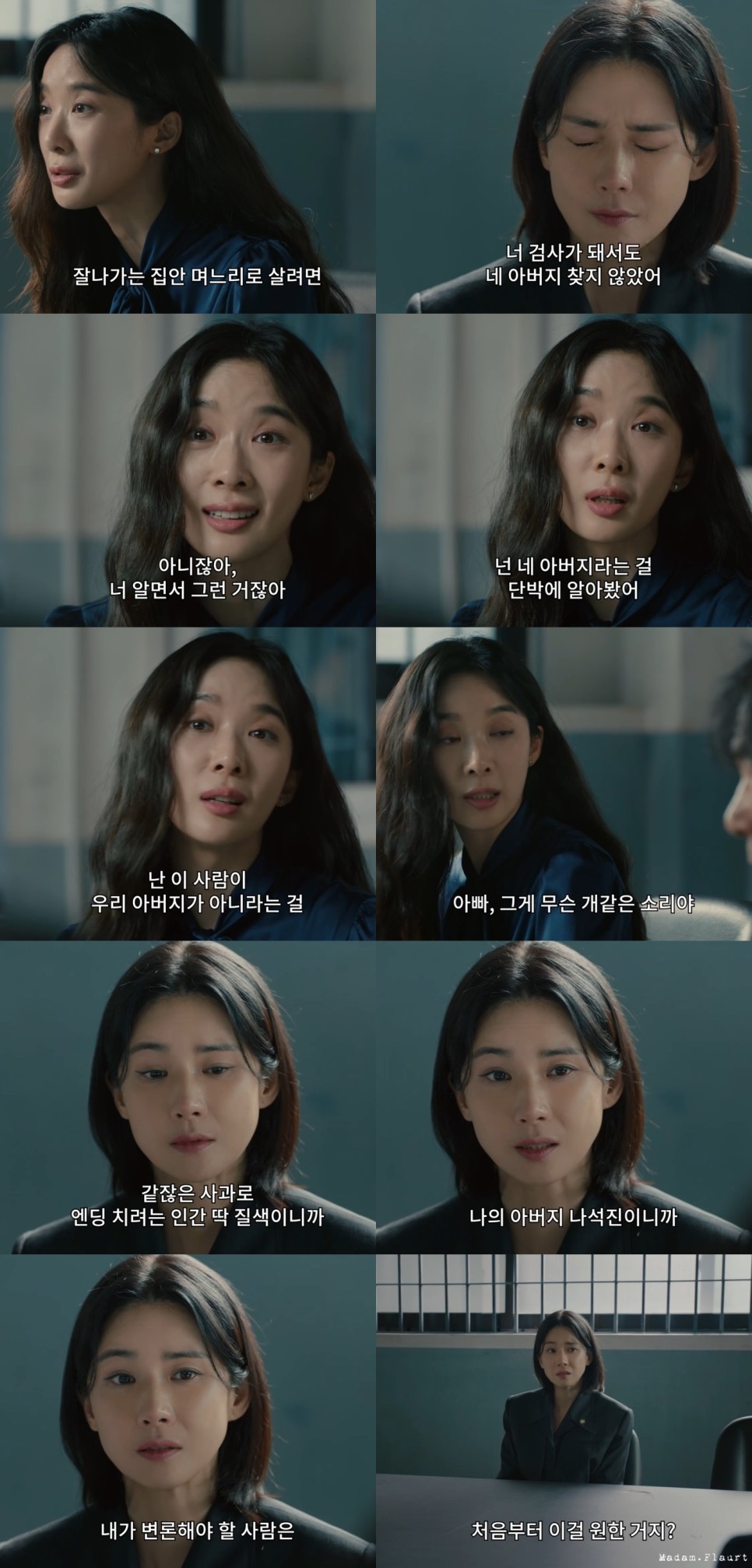 아빠가 자기를 버린 줄 알고 그래도 아빠를 찾아헤맨 세월, 아빠라고 찾았더니 어떤 인간이 아빠 행세를 하고 있던 사실, 그 딸은 검사 변호사, 좋은 집안 며느리로 살고 있다면 그 원한과 복수심의 깊이가 어느 정도일지 예측할 수 없다. 누구라도 흑화하여 선을 넘는 행동을 할 수밖에 없는 상황이기는 하다.