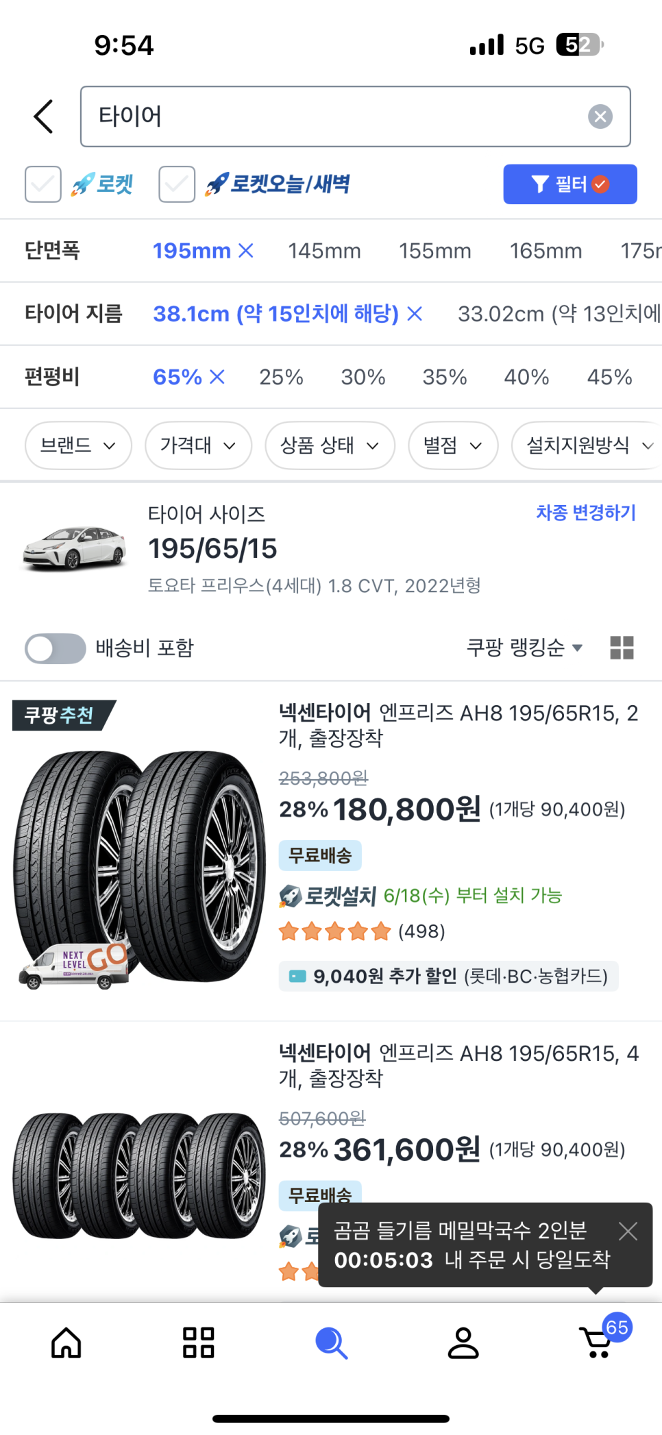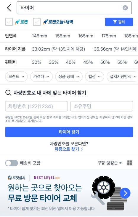 전 다음에 제 차도 쿠팡 타이어 로켓설치로 하려고 합니다.