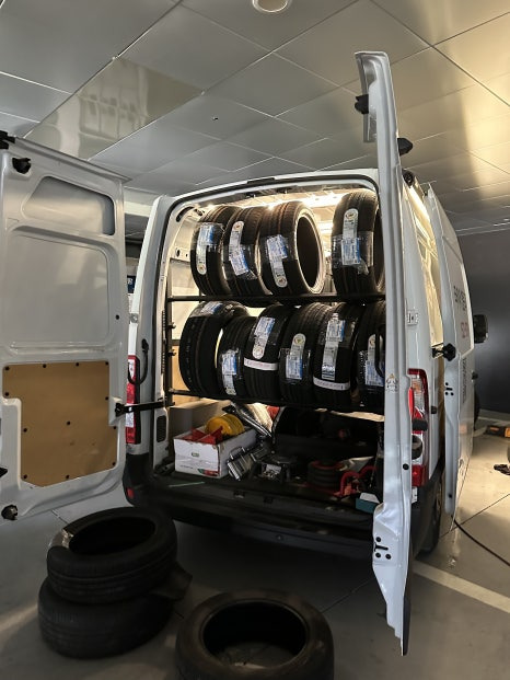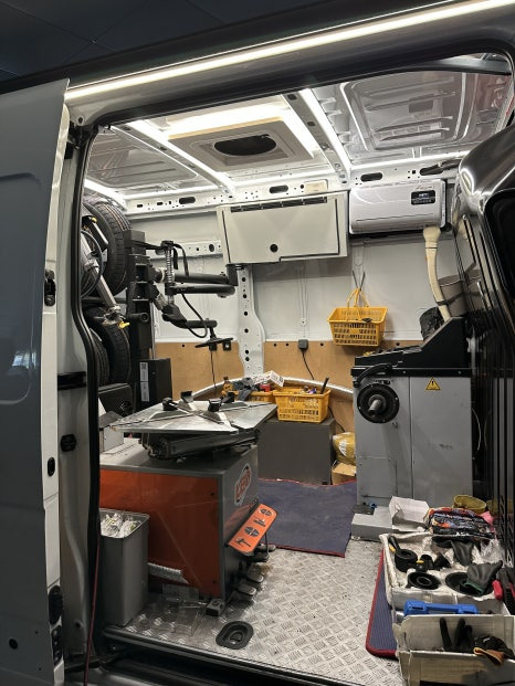 차량 내부에 타이어와 교체기계까지 알차게 설치되어 있습니다.