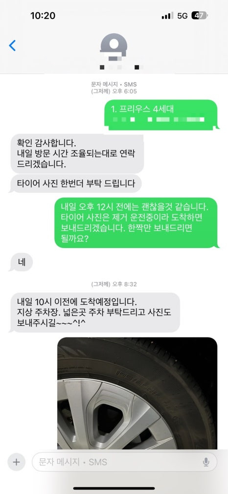 출장장착 기사님께서 배송시간 조율과 장소 협의를 위해서 연락을 주시는데