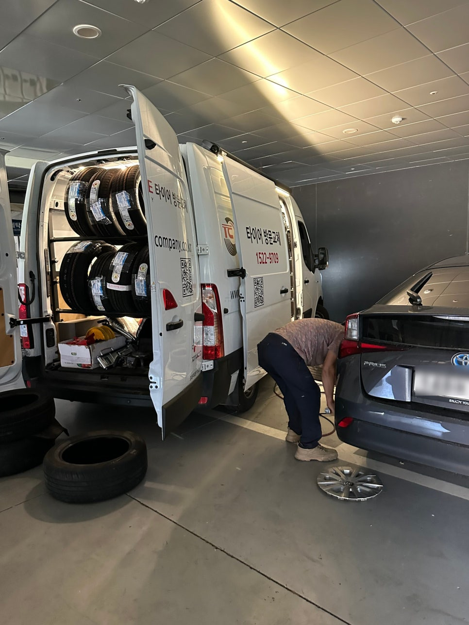 다만, 설치차량의 높이가 있어서 장소섭외와 타이어 브랜드와 종류가 아주 많지는 않다는 점은 있지만