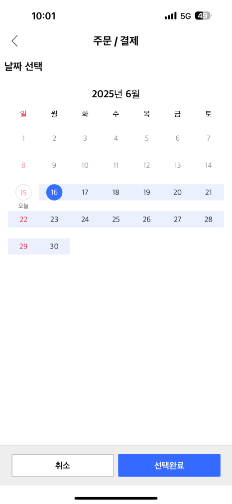 설치일 설정은 주문/결제에서 “배송일 변경”에서 가능한데 최소 1일 이후부터 가능합니다.